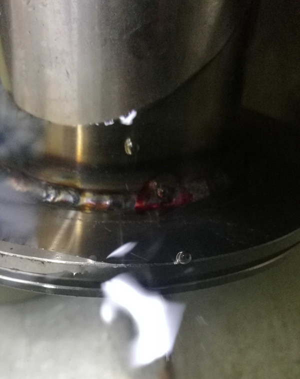 向阀门内打压缩空气放入水中冒微小气泡的泄漏如下图,用氦质谱检漏仪吸枪法测出的泄漏率3.510E-3Pa.m3/s,吸枪法检测的精度可充分满足气密性检测要求。